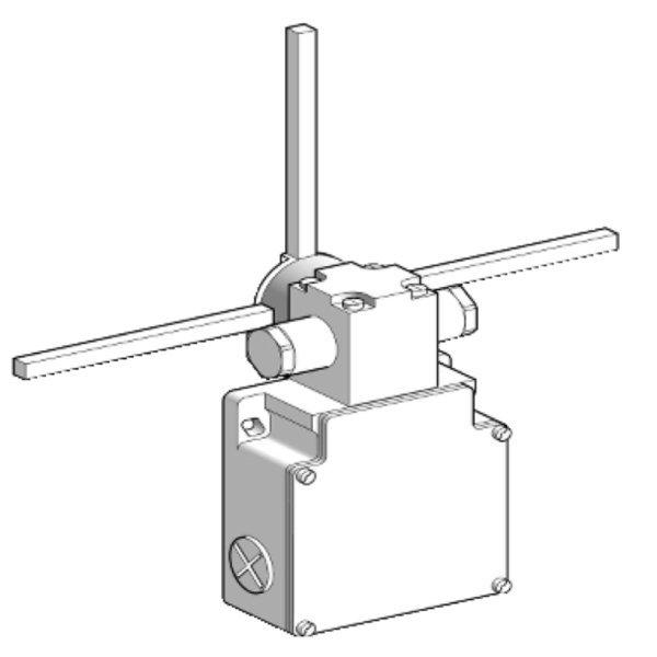 This product is part of the XC Special range, an offer of limit switches. This limit switch is a device that converts a mechanical motion into an electrical control signal. It has 2 x (2 normally closed), slow-break, staggered contacts with positive opening operation and provides switch actuation by any moving part. It has a metal square stay put crossed rods lever and supports lateral approach in 2 directions. The movement of operating head is rotary. It is furnished with screw clamp terminals for electrical connection, 5 electrical positions, 1 per direction and 3 entries tapped for M20 x 1.5 cable gland. It is an IP66 and IK07 rated product. It is a switch with a rated operational current of 3A at 240V AC, 0.55A at 125V AC and a conventional enclosed thermal current of 10A. It offers long mechanical life with a mechanical durability of about 2 million operating cycles. The limit switch head and body is made of Zamak. Its dimensions are 200mm (Width) x 59mm (Depth) x 118mm (Height) and weighs 0.55kg. It is suitable for hoisting and mechanical handling applications. This product is certified by CE, CCC, UL and CSA. It meets CSA C22.2 No 14, UL 508 and EN/IEC 60947-5-1 standards. The XCKMR is a complete unit with 3 cable entries and positive opening contacts, one per position. Very rugged with heavy duty metal cases. Dedicated products for overhead cranes and block hoists for end of travel control. Special format limit switches for severe environments.