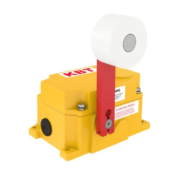 Once the roller actuator arm is moved from its normal position, the microswitches are tripped. The microswitches can be used to alarm the control system, indicating either to shut it down or to move the piece of heavy machinery.
