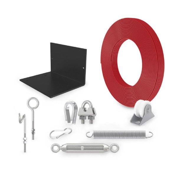 This equipment, which is directly mounted to the product, allows the tension adjustment of the entire rope.